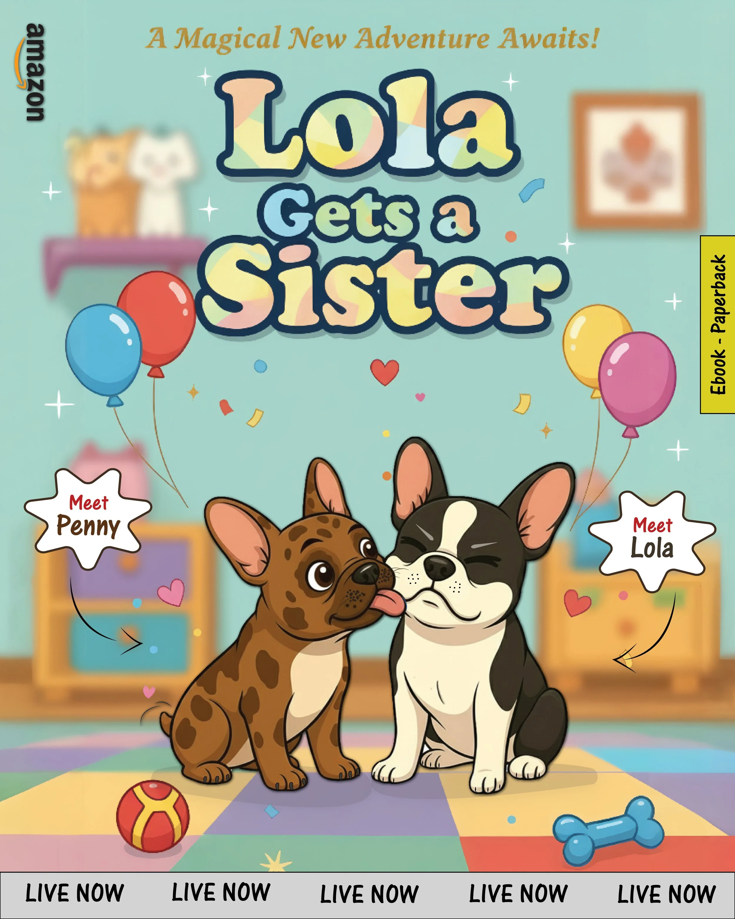 Now Live! * Now Live! * Now Live! * Lola Gets a Sister Join Lola the frenchie and her family as she embarks on her new journey of getting a sister. Please follow the link below our Amazon Link. Purchase on Amazon